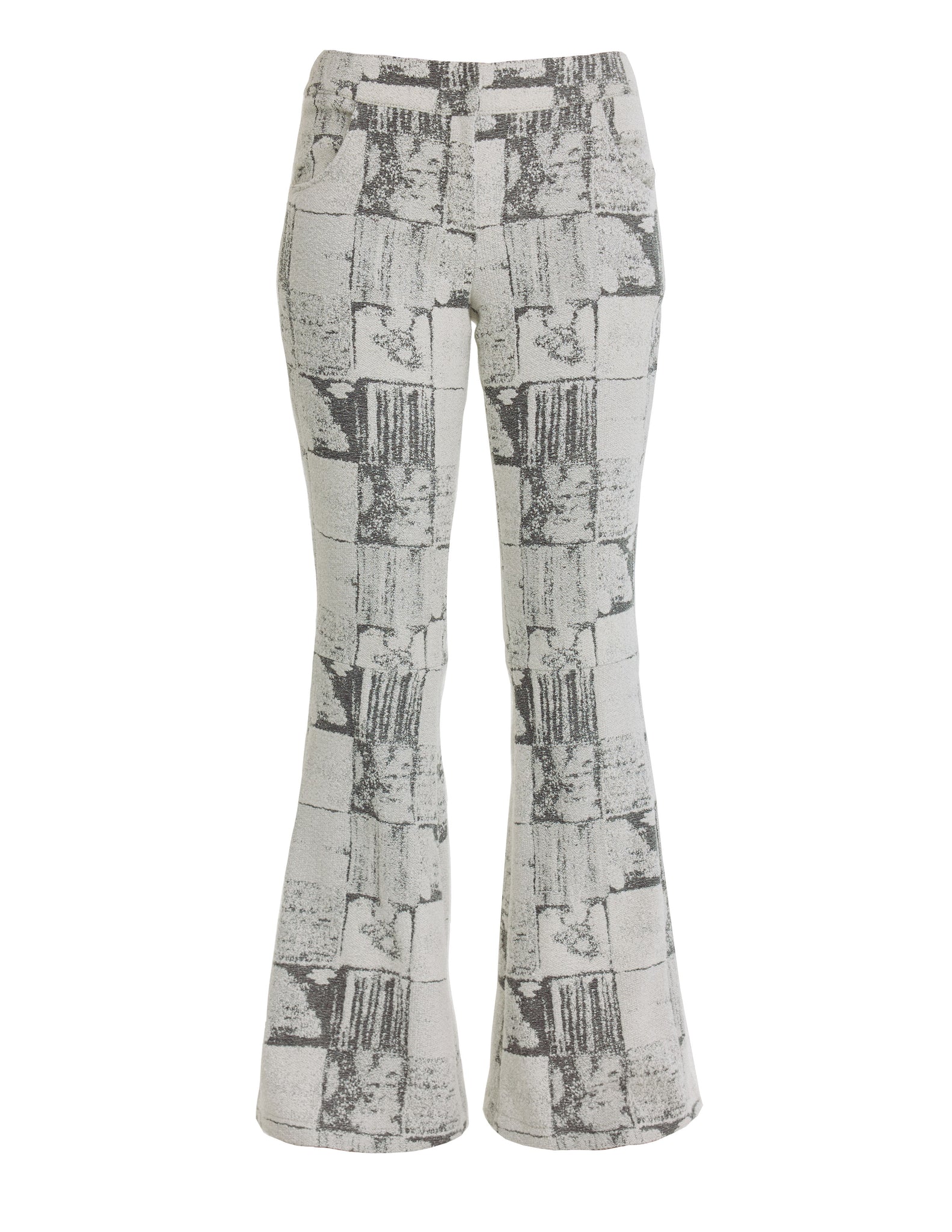 Comfy bootleg trousers made from warm, stretchable wool with a checkered marble design. The cut is a slim fit and bootleg that flatter the silhouette. Mid-rise waist.